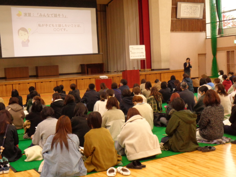 PTA講演会では、信州大学教育学部教授の上村惠津子先生をお招きし「子どもとのコミュニケーションを考える」についてご講演いただきました。はじめに近くの方と「子ども自慢」や「子どもとの会話」について話をするなどし、リラックスした中で講演会は進んでいきました。子どもたちは自我の発達とともに、様々な表現を私たち大人に見せてくれます。一つ一つの態度や言葉、そして距離感などに、子どもたちの思いがあることもお話の中でよく伝わってきました。そして、日常の自分自身の様子を振り返り、今後に生かしていきたいと感じる時間となりました。