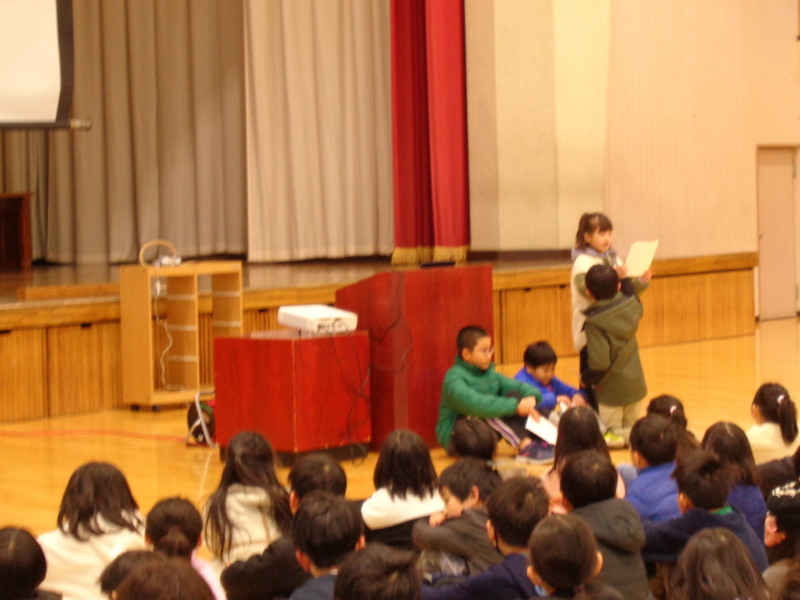 3学期始業式での代表児童発表では、「自分からあいさつすることをがんばりたい」「無言清掃に取り組みたい」「よい姿勢で勉強に取り組みたい」「掃除を隅々まできれいにできるようにしたい」「誰とでも仲良くできるようにいしたい」「授業中の私語をなくす」「上郷の歴史をしっかり調べたい」「委員会の当番活動をしっかり行い、全校で節電できるようにしたい」「最高学年になる準備をしっかり進め、下級生を引っ張っていけるようにし、6年生からしっかりと引き継ぎたい」と発表がありました。声の大きさ、姿勢、とても素晴らしい姿で発表を行い、また、発表を聞いている全校の姿勢もよく、素晴らしいスタートができれました。